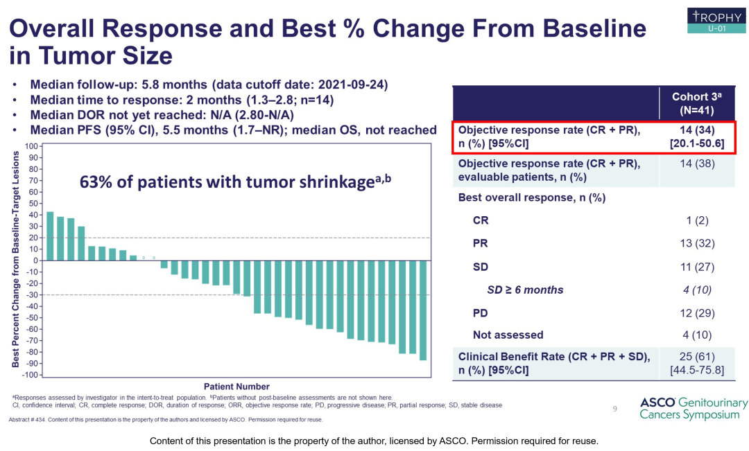 ● TROPHY-U-01队列3:戈沙妥珠单抗(SG)联合帕博利珠单抗(Pembro)用于铂类(PLT)经治进展的转移性尿路上皮癌(mUC)患者(pts)1